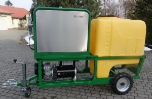 Onkruidkoken Deze machine kookt het water waarmee het onkruid bestreden wordt. De machine kan worden ingezet met een spuitbalk of met de sproeilans. Tevens beschikt de machine over een hogedruk functie, wat hem breder inzetbaar maakt. De machine is relatief licht waardoor er gewerkt kan worden met een licht trekkend voertuig. Minitractor of electrokar zal voldoende zijn.