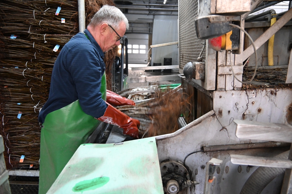 While Marcel Helmus leads the hot water treatments, his partner Epco Schippers is the experienced washing specialist. In a flash, he lays the plant material on the automated washing line so that they come out spotlessly clean.