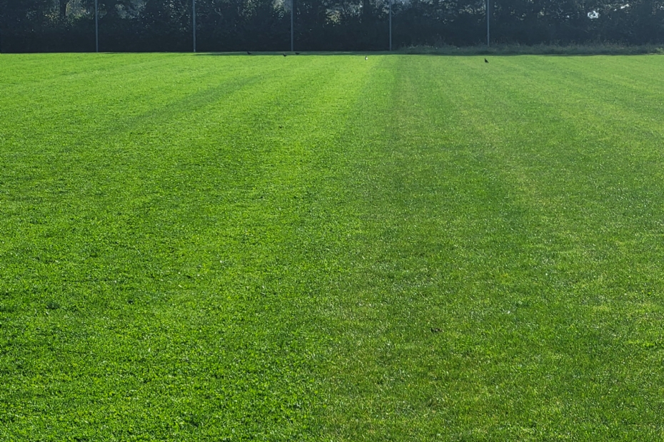 Microclover Sports Field 6: a perfectly even distribution of Microclover on this sports field—growing low between the grass, it forms a dense, strong turf.