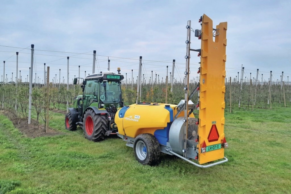 In fruit cultivation, experience has already been gained with the Abemec/KWH Mistral. This spot sprayer can also detect vertical green in hedgerows and avenue trees. Thanks to this invention, you can deal with crop protection agents and foliar fertilizers more sustainably. It is debatable whether this is a robot. The system is actually mounted on a pulled tank. Hans Quint says about this: 'This system works perfectly in fruit cultivation and the expectations for use in tree cultivation are good. From April 2025, we can tell you more about this. The Technical Committee on Technology Assessments (TCT) has assessed this KWH EC 2 Mistral cross-flow sprayer with hole detection system and classified it in the DRT class 99%.'