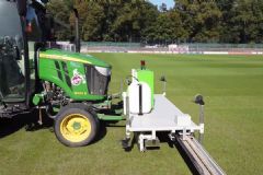 At the B!ngoal Stadium, the hybrid field is illuminated two to three times per week using this LED module attached to the mower, and the results are astonishing, according to those involved. Felix Oudshoorn is the mastermind behind this application. He spent years in the industrial gases market before taking on roles at Aquaco and TLS. Oudshoorn was already familiar with the effects of this specific type of light from the greenhouse industry. He thought: a spin-off of this technology could be valuable for sports fields.