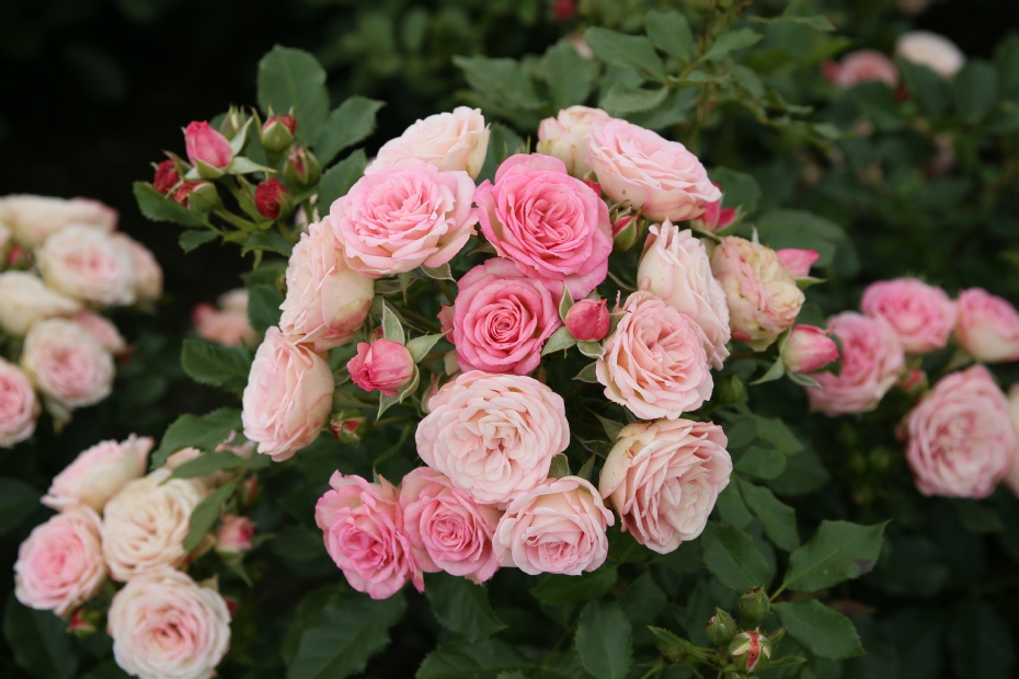 Broadly upright floribunda rose from Kordes. The flowers show pink tones that fade to cream. They appear in large clusters and are fully double. After flowering, green hips form that later turn orange. At the locations, height ranged from 50 to 140 cm.