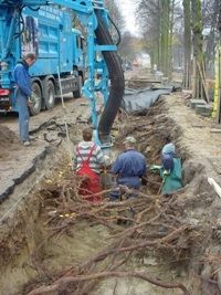 Grondzuigwagens worden tegenwoordig ook ingezet om rond grond rond boomwortels weg te zuigen. Met deze methode krijgt men er beter zicht op waar precies de kabels tussen de boomwortels lopen.