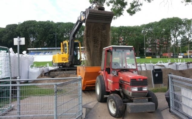 Extra rubber Bastiaan Doornewaard van Silica Nova legt uit: 'We brengen een laag van 8 à 12 millimeter zand terug in de "lege" kunstgrasmat. Het resterende deel van het kunstgras wordt gevuld met het oude rubber, waar we nieuw rubber aan toevoegen. De materialen zijn dus hetzelfde, maar de verhouding is anders dan in de oude situatie. Door de extra hoeveelheid rubber brengen we de sporttechnische waarden van het kunstgrasveld weer op peil.' De revitalisering pakte goed uit. Het veld was in 2014 afgeschreven, maar de levensduur van het veld is met vier jaar verlengd en daarom gaat het veld uiteindelijk deze zomer pas op de schop.
