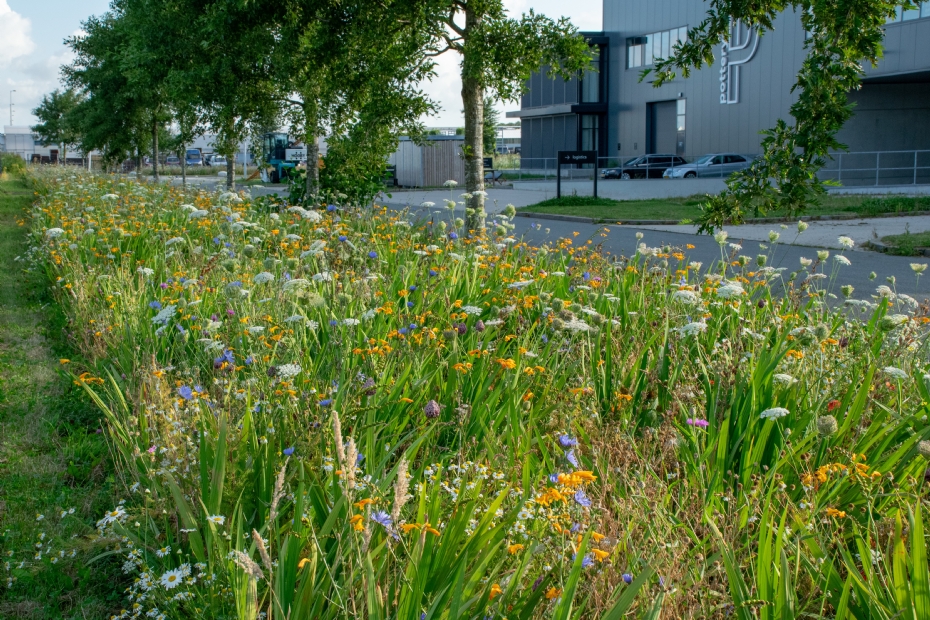 In general, Dutch business parks are not known for their greenery. They are often stony sites, filled with buildings and parking spaces. There might be a strip of grass here and there, or a tree growing somewhere, but that's about it. So, there are thousands of opportunities to green and brighten up these areas. At the ITC site in Hazerswoude-Dorp, this was done in part with the help of the De Bonte Berm concept.