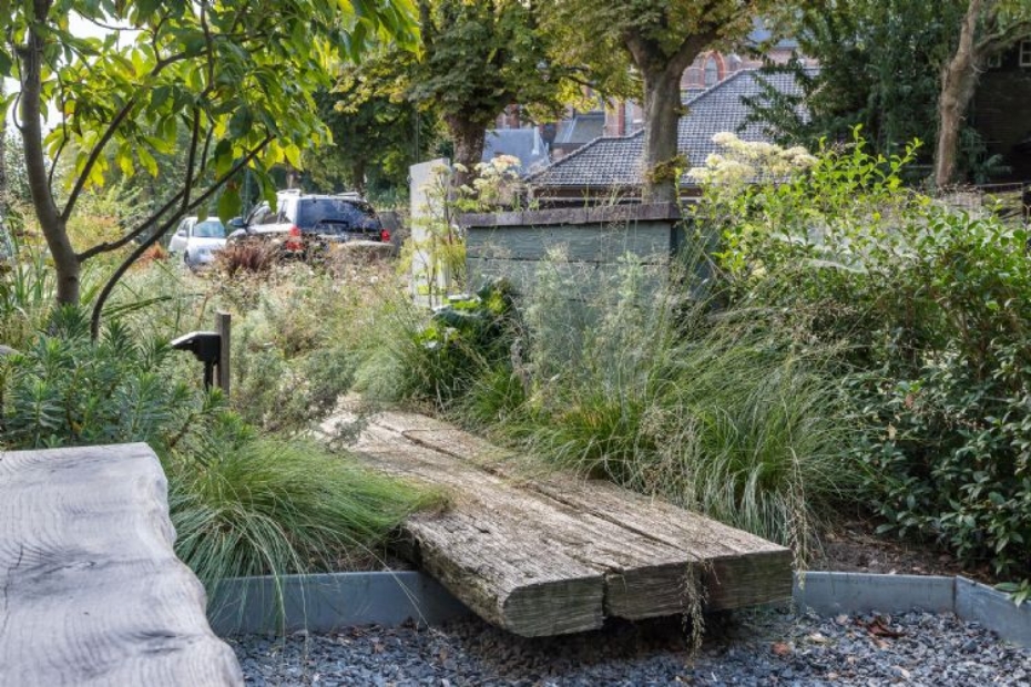 Tuinstudio Tom has created a green front garden that, according to designer Tom Poppelaars, offers surprises in every season. Half of the planting, supplied by Kwekerij & Plantencentrum Schonenberg, consists of native species. The zinc edging was supplied by Adezz, and soil improvement was carried out by Den Ouden Groep.