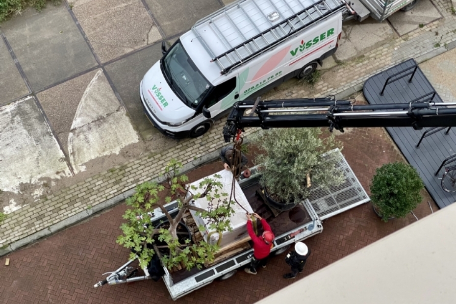 Securing and transporting the load to the sixth floor. Photo H. Visser Hoveniers - Erwin van Heteren