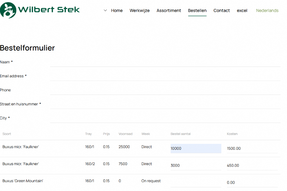 Wilbert van Luenen, owner of Wilbert Stek: 'Our customers can place all their orders through our website. They don't need to create a special account or log in. The grower only has to go to the order page, where our current stock is shown in an overview. Our aim is to keep more stock than in recent years. We want to make it as easy as possible for our customers. In addition to the existing, regular customers who order annually, new customers, both domestic and international, can also use the website. But the majority consists of our current clientele, half of which are Dutch growers; the other half is export. Our assortment is actually divided into western, southern and eastern Europe.' The new online ordering option not only makes things easier for the customer, but also for the Wilbert Stek team. 'Previously, orders were placed by email or telephone. There was also an order function on the website, but it did not work efficiently. For us, it is also more effective in handling and administration.'